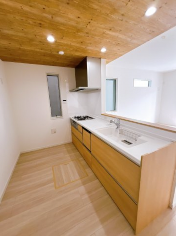 - システムキッチン、浴室乾燥機、モニタ付インターホン、洗浄便座、追い焚き、駐車場2台分、床下収納、トイレ2箇所